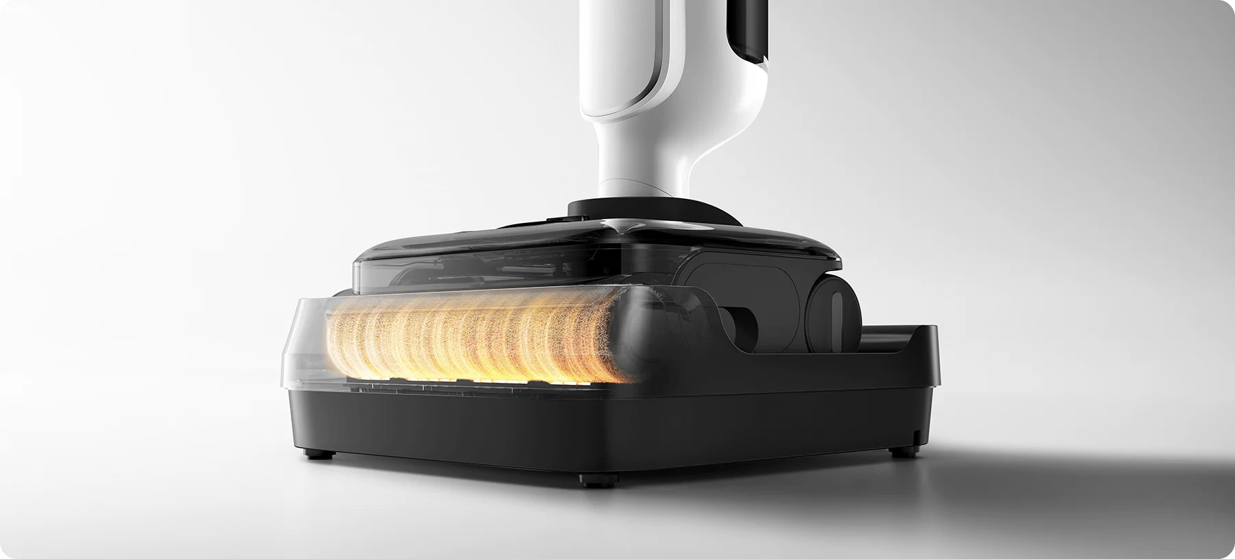 После завершения уборки роликовая щётка автоматически промывается и сушится горячим воздухом при температуре до 80–100 °C. Очистка и сушка выполняются встроенными средствами пылесоса, без отдельной станции самообслуживания. Это помогает предотвратить появление запахов, развитие бактерий и продлевает срок службы ролика.
