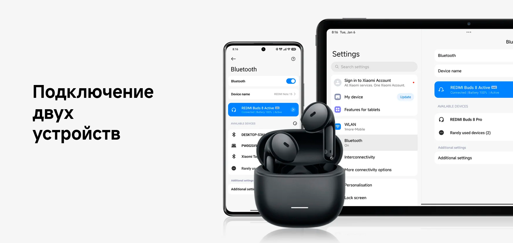 Buds 8 Active поддерживают активное шумоподавление, что делает прослушивание более комфортным в шумной обстановке. Для общения предусмотрена система из двух микрофонов с ИИ и шумоподавлением, которая помогает точнее передавать голос во время звонков, видеосвязи и голосовых сообщений.